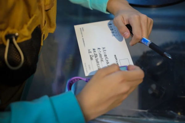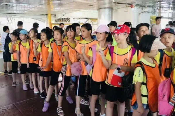 开启独立挑战第一步,孩子们自行购票。(带好医社保卡,家长给孩子准备10元钱,8元轮渡票,2元启动资金)