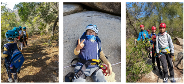 岩壁之攀、山脊之行,通过攀爬实践让孩子收获专注力;通过毅行动作激活孩子内心坚持的不懈理念。