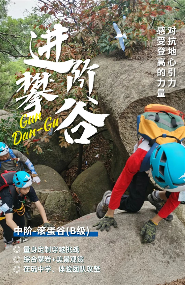 进阶难度的B级攀谷,我们期待孩子自我边界的突破,激发他们永不放弃的精神,树立尊重自然的态度,见证少年们的茁壮成长。