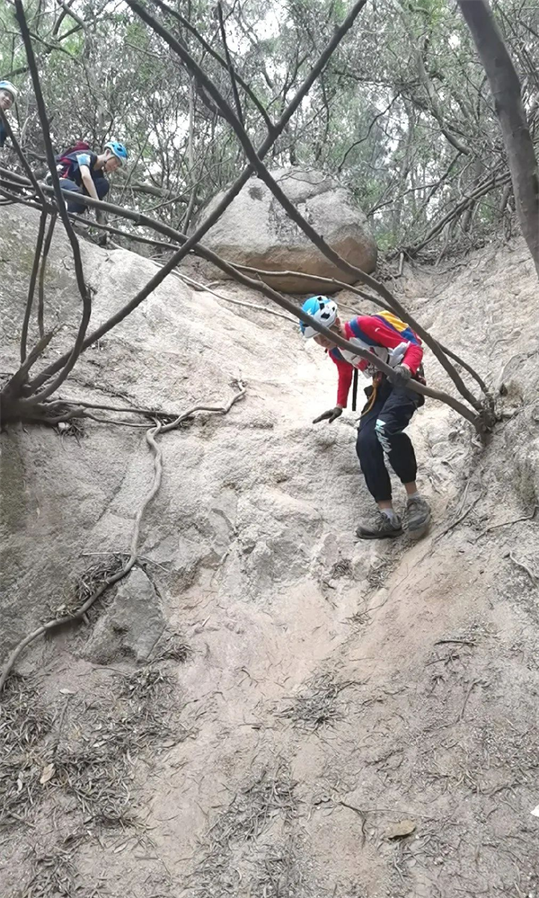 谷间山石陡峭,越往上爬、地形越加陡峻,极大挑战了孩子们的耐力和毅力——这是攀谷的关键能力,其重要性更胜于体力。