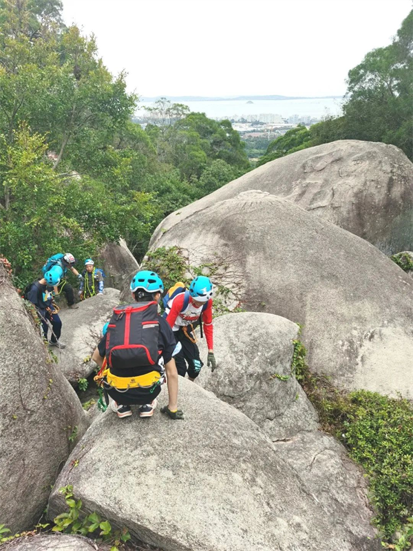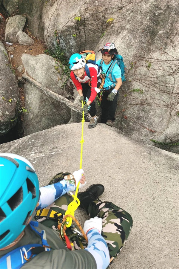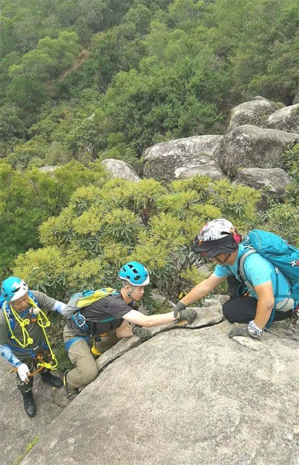 通常需要有经验的领队先攀上卵岩,然后依靠绳索协助其他队友攀登。