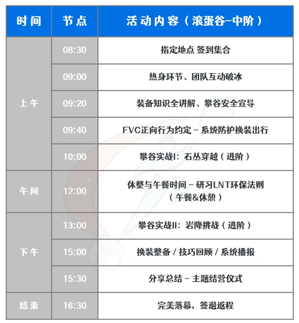 (注:排期表仅供参考。行程安排受天气、场地等因素影响,执教团队保留依情况略作微调的权利。)
