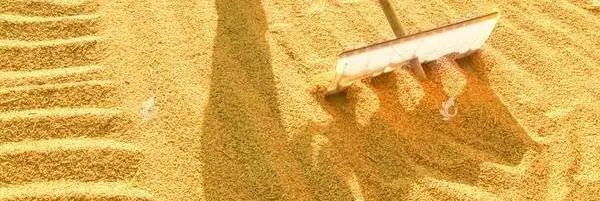 拿起收割好的稻子使用传统工艺使稻穗分离体验打谷脱粒一大把一大把的稻穗在拌桶中变成了金灿灿的谷粒。