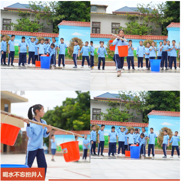 忆苦思甜,村里规定:遵循“粒粒皆辛苦”,每一位同学都应当做到粮食不浪费,吃多少,装多少。