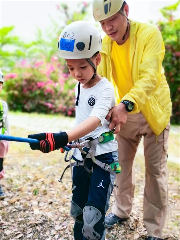 出发之前,我们的教练会讲解安全装备的使用和操作方法,让孩子们了解这些装备是如何保护自己的。