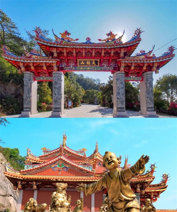 13:00 抵达后游玩【天柱仙境】,观音桥、十二生肖、金碧辉煌的大雄宝殿、万佛殿内28米高的三面观音等在青山之上云海之间,让自己浮躁的心静下来,感受源远流长的闽南禅寺文化。