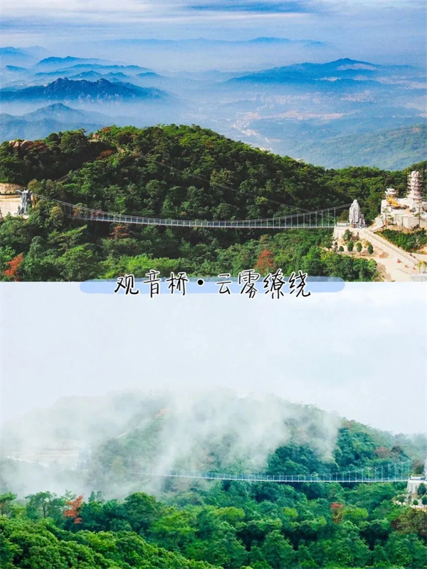 天柱仙境:观音桥、十二生肖、金碧辉煌的大雄宝殿、万佛殿内28米高的三面观音等在青山之上云海之间,让自己浮躁的心静下来,感受源远流长的闽南禅寺文化~