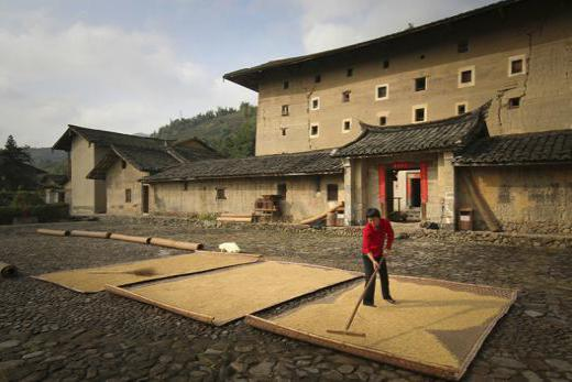 而土楼群作为世界文化遗产,它与周遭环境和民生的协调,似乎与生俱来。日本建筑学家茂木计一郎曾说土楼是“天上掉下的飞碟,地上长出的蘑菇”。