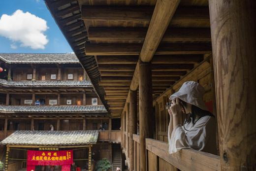 这座土楼建成后不久,楼内回廊木柱便开始从左向右倾斜,最大倾斜度为15度,看起来摇摇欲坠,但经受几百年风雨侵蚀和无数地震的考验,至今依然如故。