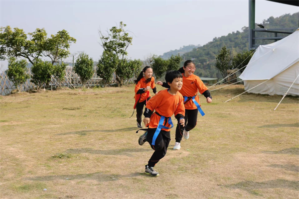 在户外,孩子会全情投入活动中