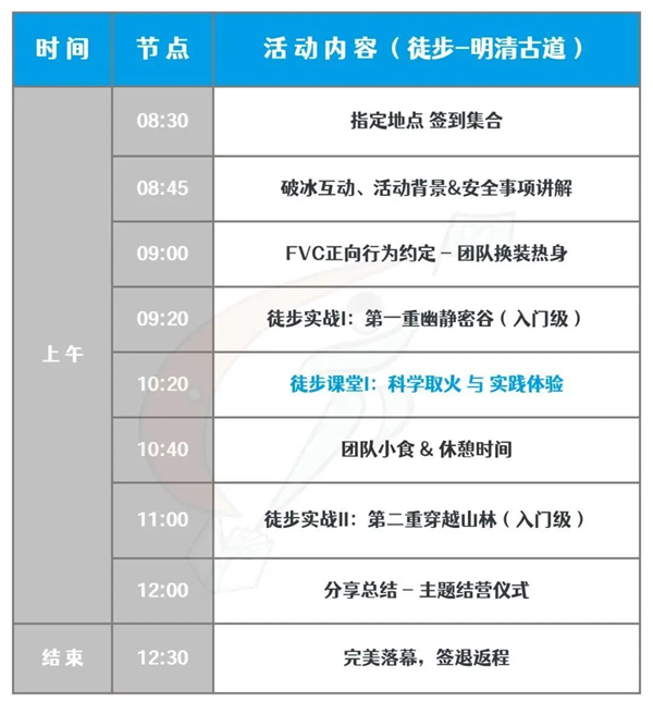 注:排期表仅供参考,行程安排受天气、场地等因素影响,执教团队保留依情况略作微调的权利。