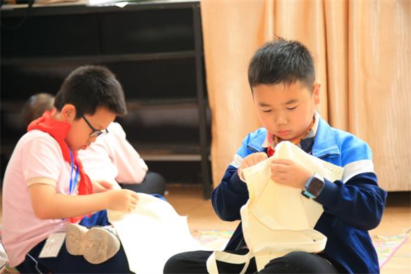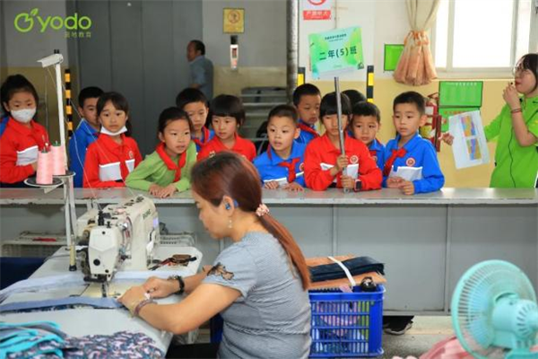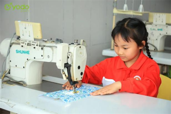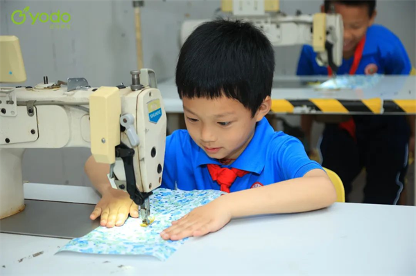 从参观到实践,机台实操体验缝纫技巧,提升孩子们的动手能力;动手缝纫小包袋,感受收获劳动成果的欣喜。
