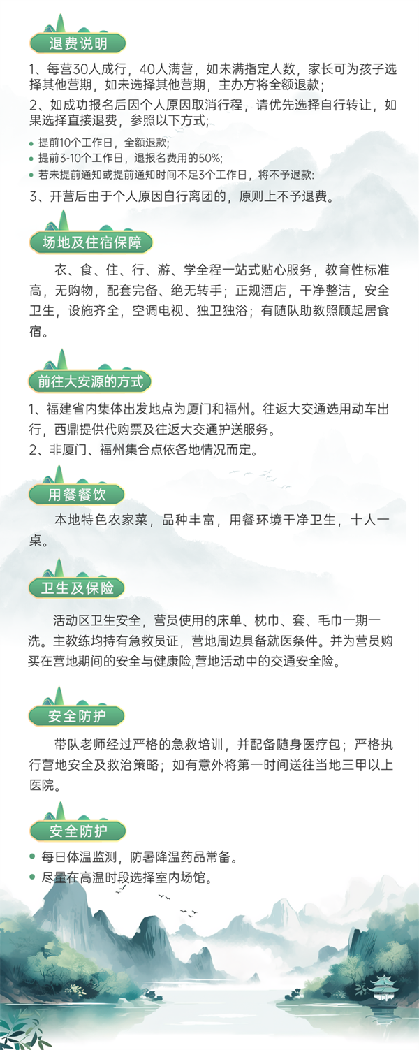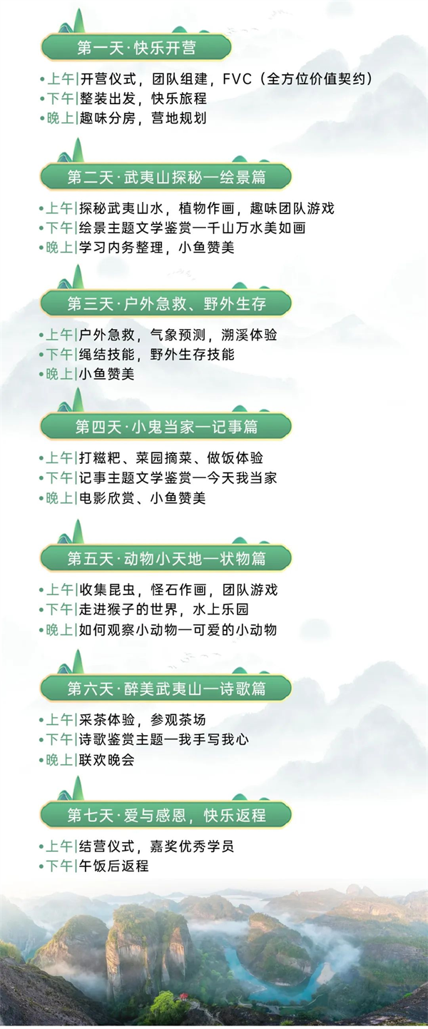 *注:本次夏令营以户外活动为主,为保障活动最佳效果,以上行程将视天气情况及孩子状态做适当调整。