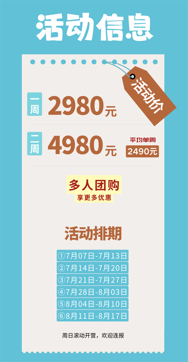 1.如由于报名人数不足无法成行,我们会至少提前10天通知家长,您可选择全额退款或择期参与其他活动。