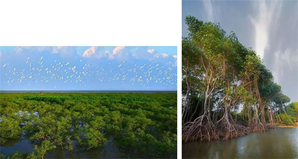 海陆交界处的生存环境非常特殊,典型的红树林植物种类并不是很多,但却养育了为数众多的动物。