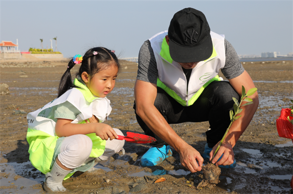 通过五感观察、感受红树林,在合适的位置,种下一颗颗红树苗,也种下一个海洋梦想的种子。