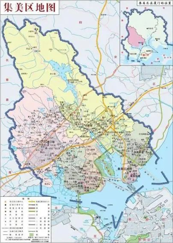 集美地处厦门岛西北面,位居厦门行政区域几何中心和厦漳泉三角地带中心位置。