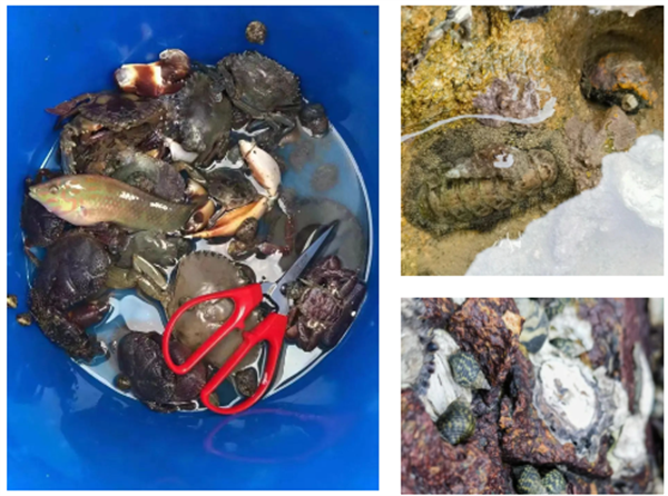 10:30 孤岛生存之一:寻找食物,老师带领小组出发,捡螺,抓螃蟹,撬海蛎,抠笔架,了解海洋生物。