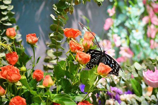 而在阳光的照耀下,五彩斑斓的蝴蝶在鲜花丛中嬉戏。它们轻盈的翅膀在微风中舞动,与娇艳的花朵相互辉映。每一朵鲜花都绽放着生命的色彩和芬芳,让您沉浸在大自然的美丽与宁静之中。