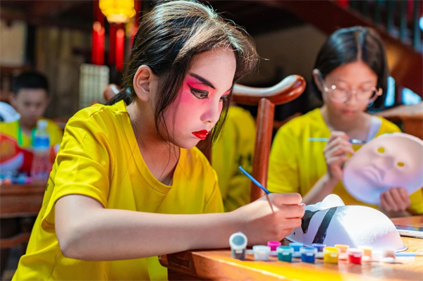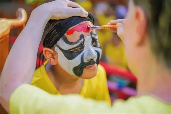 传统文化的传承与创新,戏曲唱腔、动作体验:亲身体验,戏曲上妆。