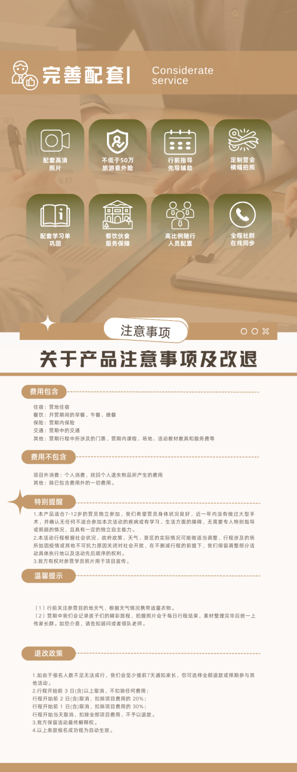 餐饮:开营期间的早餐、午餐、晚餐