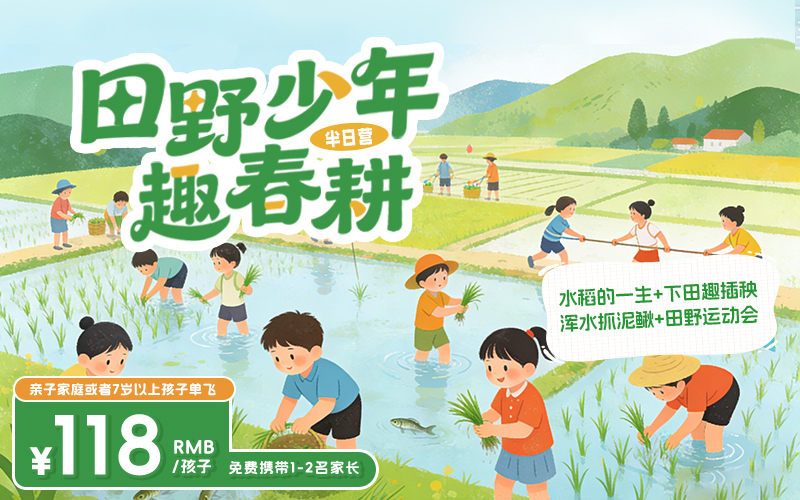 春耕特惠半日营 | 田野少年春耕咯,下田趣插秧+浑水抓泥鳅+田野运动会.......
