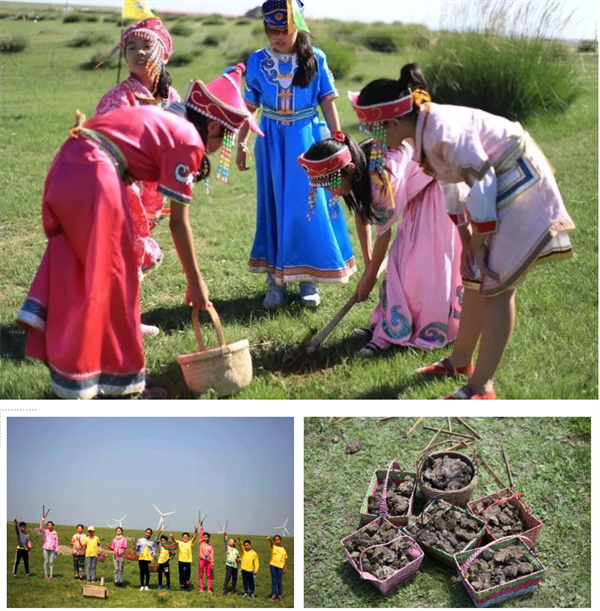 拾牛粪:蒙古人把牛粪视作财富的象征,谁家的牛粪多就意味着牛羊数量多就更富有,我们组织这个活动,谐音可以叫“拾财”活动。