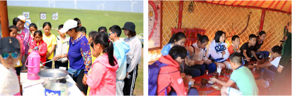 | Day3 | 蒙氏早餐 学蒙语 熬奶茶 跳蒙古舞 | 羊群合影 穿蒙古服 拜访牧民 祭拜敖包 搭建蒙古包 | 体验蒙古草原 皇室盛宴 诈马宴 行程分享日记 熄灯查寝 夜宿蒙古包 |