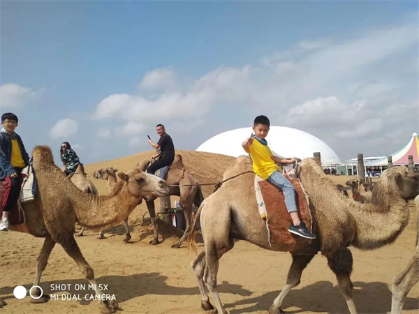 | Day4 | 乘车去往 库布奇沙漠 响沙湾 | 特色骆驼宴 坐观光车 坐沙漠之舟 高空滑索 舞台实景演出 果老剧院演出 轨道单车 沙漠探险车 骑骆驼 滑沙 | 特色莜面宴 行程分享日记 熄灯查寝 入住呼和浩特市 |