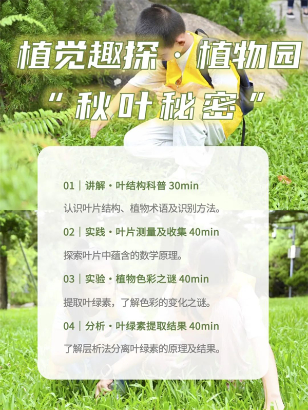 秋叶秘密课程以“科学”的角度,从秋叶的形(容颜)与色(魔法)切入,通过自然观察,结合科学小实验操作,让孩子们一叶见真知,学会用科学的思维思考问题、解决问题。