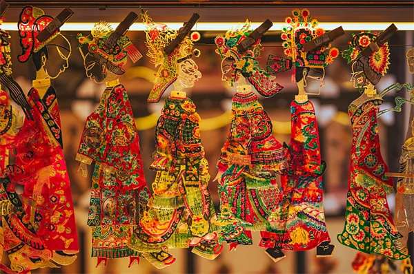 观看【皮影戏】艺人们在白色幕布后面,一边操纵影人,一边用当地流行的曲调讲述故事,同时配以打击乐器和弦乐,具有浓厚的乡土气息