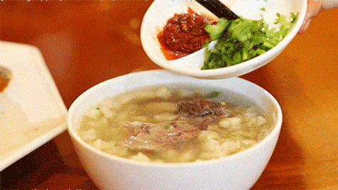汤底浓郁,没有羊肉膻味的——羊肉泡馍