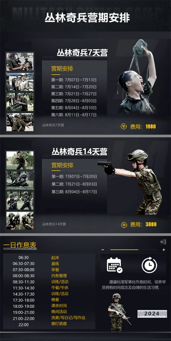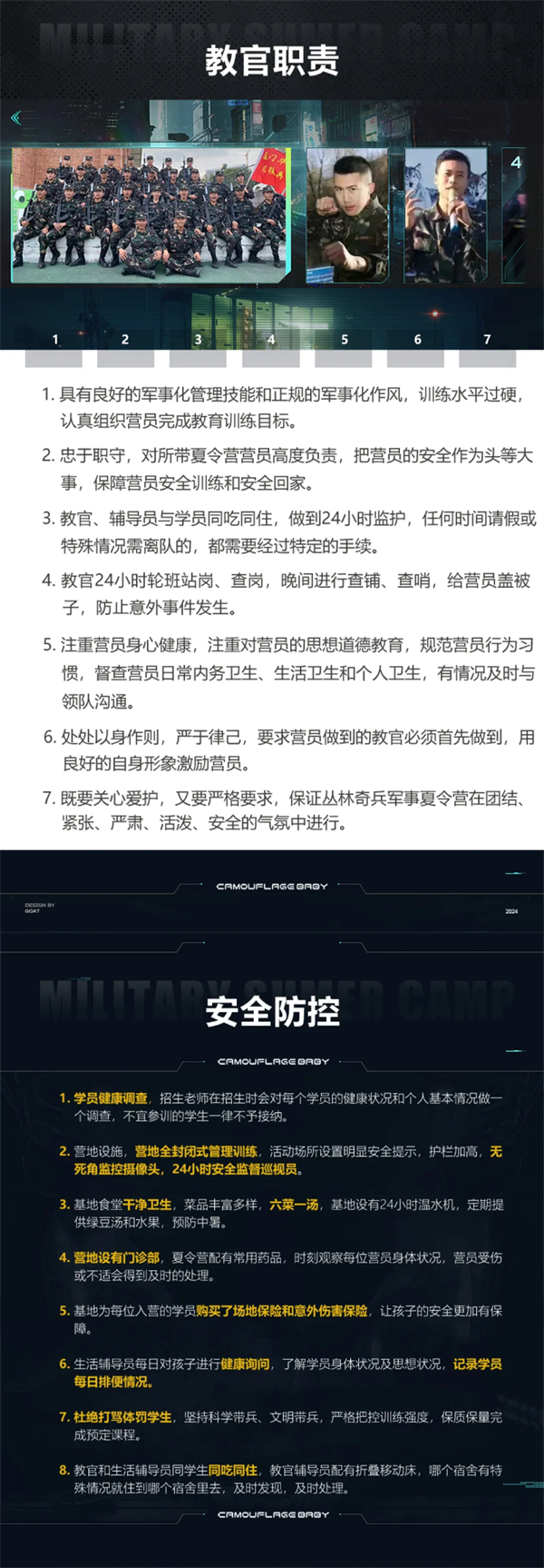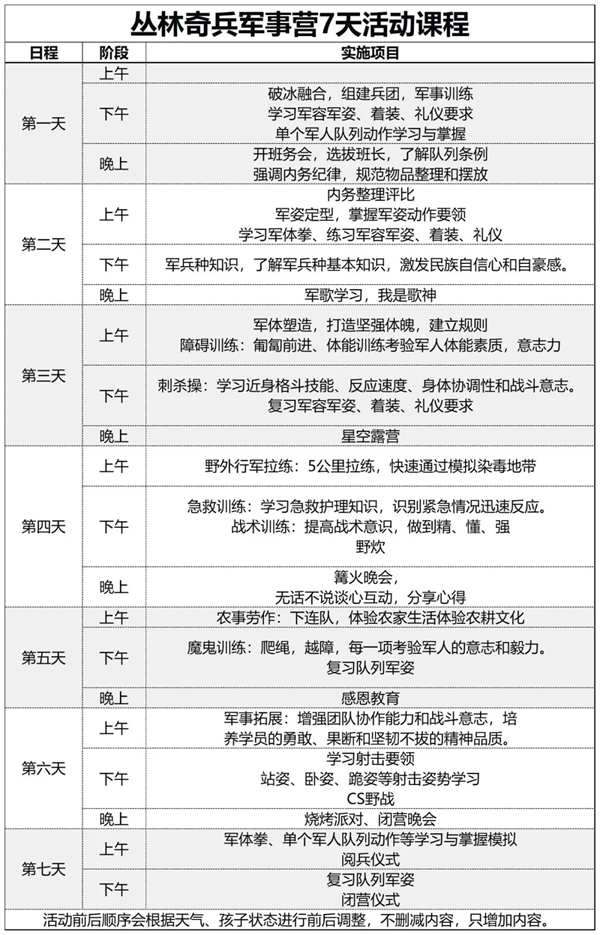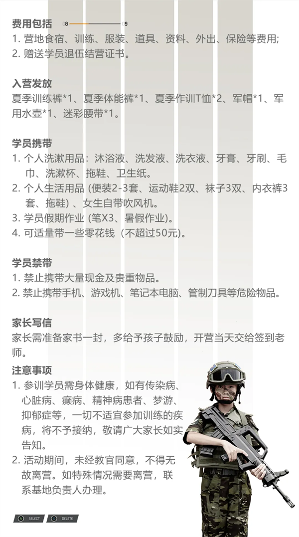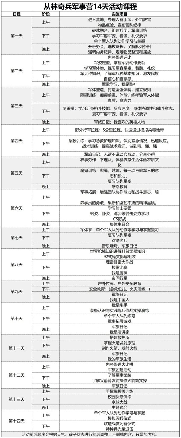 1.营地食宿、训练、服装、道具、资料、外出、保险等费用;