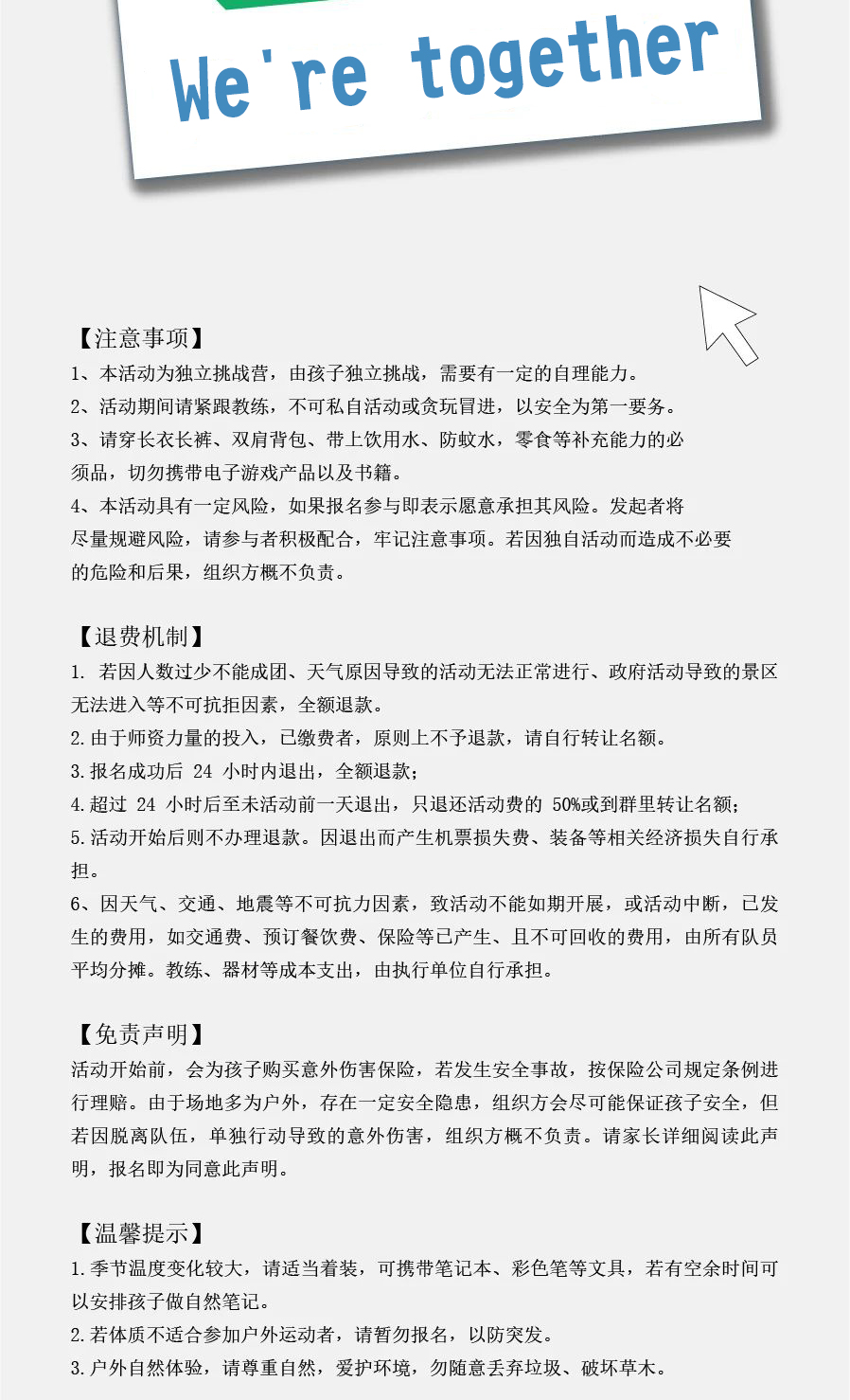 5.活动开始后则不办理退款。因退出而产生机票损失费、装备等相关经济损失自行承担。