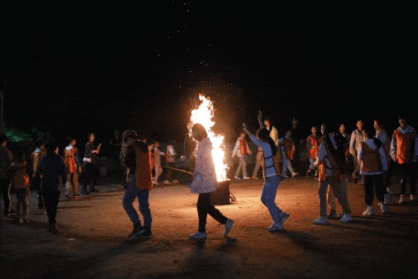 在温暖的火光与璀璨的星光下,尽情释放青春活力,让欢声笑语回荡在山谷间,铭记这难忘的一夜。