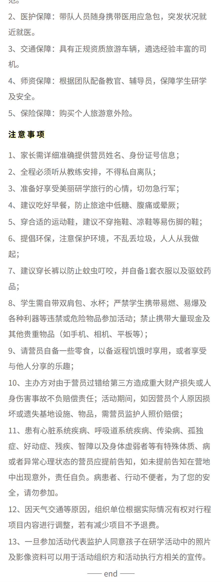 3.主办方拥有研学活动中摄影、摄像资料的所有权和使用权,如有特殊情况提前告知,摄影或摄像以体现整体活动为主。