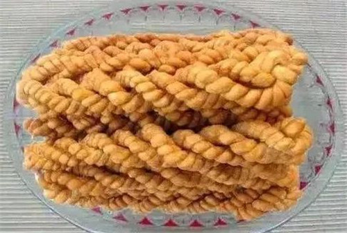4、取剂条搓70厘米长条,上剂拧20厘米长,6个劲的麻花生坯。