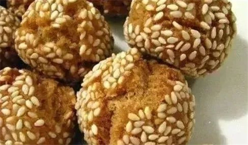 3、芝麻用少量水拌一下,把面坯放在芝麻盘里滚动。