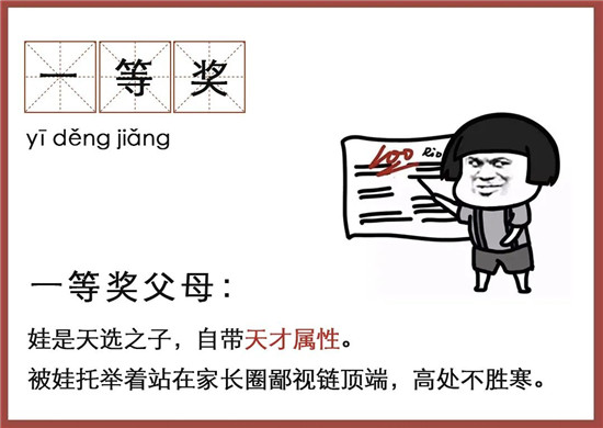 拿到一等奖的父母是家长会上的风云人物,不发言自带威严,不主张自有人向他看齐,不说话也有人来讨鸡娃经验。