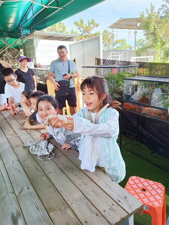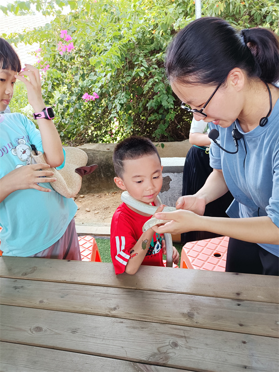 胆子的孩子还能让蛇缠绕在自己脖子上