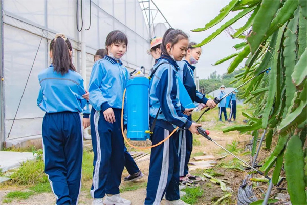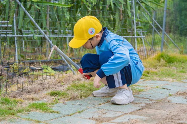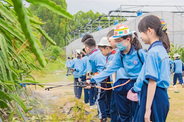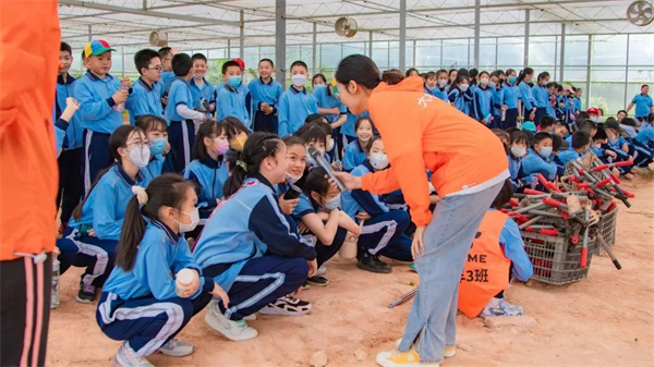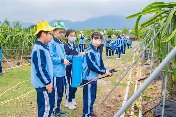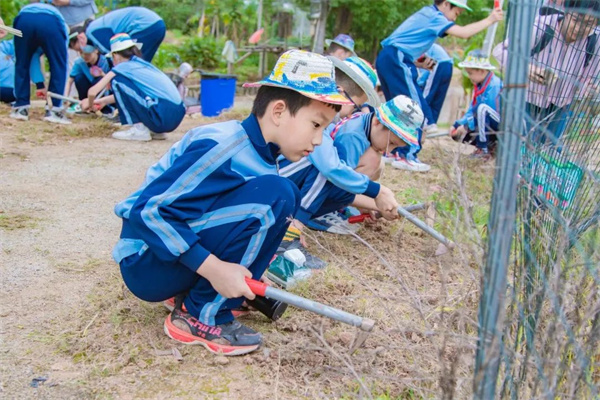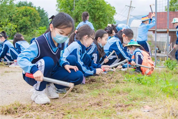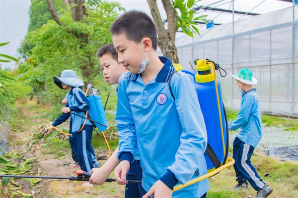 这不,大地农场迎来了厦门市前埔南区四年级的一批小农夫,他们扛起锄头,背上打药箱,在地里头热火朝上地干了起来。