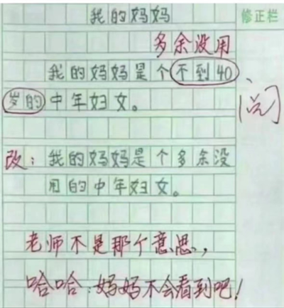 老师好心给了意见,提醒那句“不到40岁”多余无用,结果娃“心领神会”,改成: