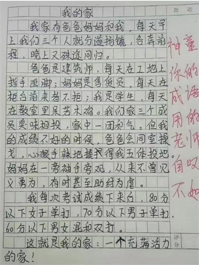 可见这孩子的文字功底和造诣,给我留下深刻印象。