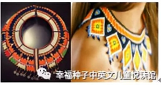 课程故事:欣赏非洲原始生活的装饰,感受造型的夸张、变形及色彩的丰富,感受非洲的部落原始生活。