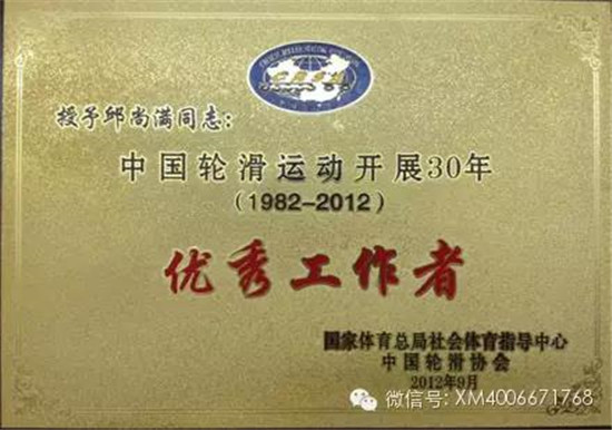 中国轮滑运动开展 30周年,壹鹭溜轮滑俱乐部荣获“全国轮滑运动优秀俱乐部”,邱尚满荣获“优秀工作者”俱乐部所取得的这四项殊荣,成为对壹鹭溜近几年来在推广轮滑事业上所做出的努力最好的肯定。