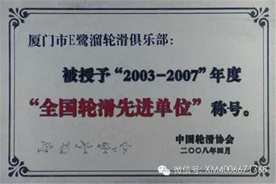 于 2008年 4月荣获由国家体育总局社会体育指导中心和中国轮滑协会共同审核批准的 2003-2007年度“全国轮滑先进单位”称号,成为福建省唯一获此项殊荣的俱乐部机构,俱乐部负责人邱尚满获 2003-2007年度“全国轮滑先进个人”称号。