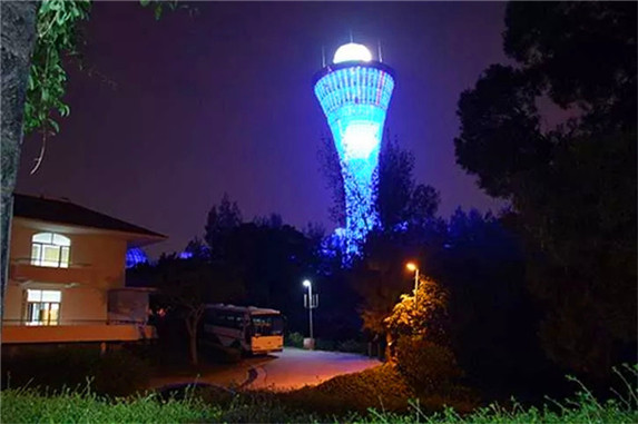 裙楼有天文、气象科普馆,天象放映厅。浅绿色钢化玻璃外墙,把塔楼映衬得美丽多姿。现代化的光电技术,让塔楼为厦门的夜景增添了一道亮丽的风景。塔顶的雷达天线罩,远眺犹如一颗明珠。
