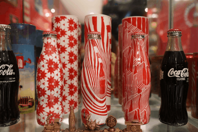 在可口可乐博物馆,珍藏着许多来自世界各地的可口可乐纪念瓶!老佛爷设计的可乐瓶、阿妹可乐瓶、施华洛世奇水晶瓶以及各个时代不同造型的可乐瓶等等,让你享受可乐瓶的视觉盛宴。