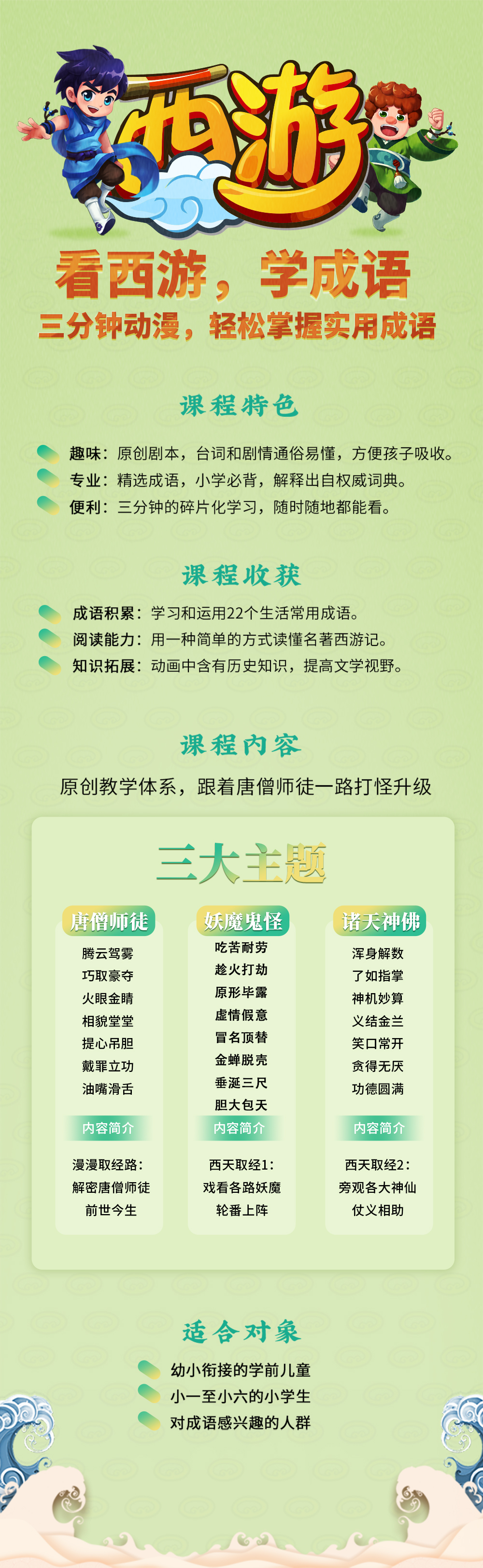 本课程适合:幼小衔接的学前儿童、小一至小六的小学生、对成语感兴趣的人群