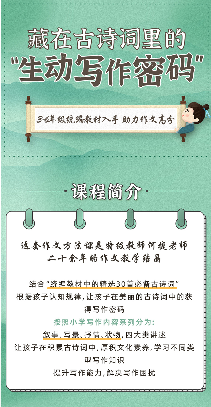次元橙课堂携手全国儿童写作教学名家何捷,独家首发——《藏在古诗词里的“生动写作密码”》作文课程